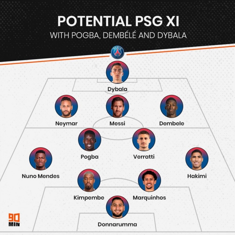 媒体预测巴黎新赛季阵容:迪巴拉单箭头,登贝莱&博格巴加盟